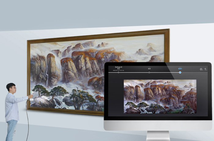 可见高分辨率达0.25毫米,EinScanH捕捉美工或家具之类对象全几何高精度扫描数据达0.05毫米和体积精度0.1/m提高三维建模密度点云或多边形网格的精度