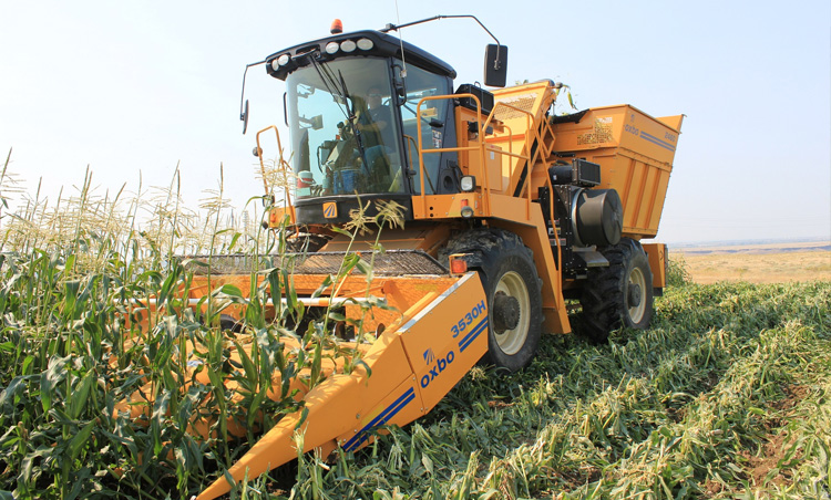Oxbo开发出各种自推收割器,提高产量、性能、可靠性、运算符舒适度和控制种子玉米和甜玉米收割