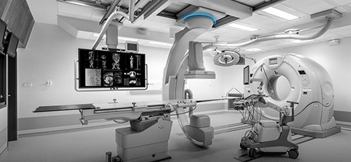 X射线机成像单元嵌入一个剖面形的病人所谓的C-arm手势应容易和一致倾斜