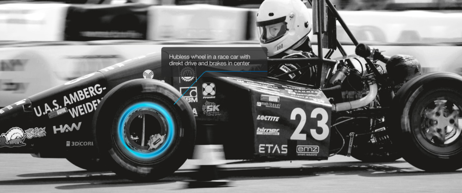 铝-碳轮机电赛车中央安装驱动和制动装置轴承使用应极小安装空间并提供大中心通关同时,大力和托盘必须可靠传输
