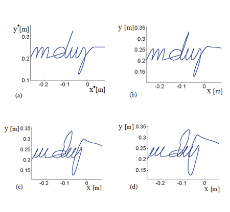 分布定位概念(DP)原为机器人设计,用于解决写字冗余问题DP概念包括分离原端效果运动以慢全局运动并按机器人动态能力分配这些组件:慢构件大规模基本配置和快构件光冗余笔迹中发现手指参与、可辨识性与字母偏向之间的关系,并证明存在最优易辨识性变换手势疲劳显示机器人帮助纠正笔迹失常被视为最终目标