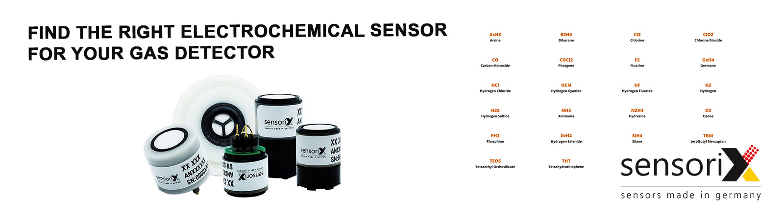 Sensorix GmbH是一个全球电化学气传感器制造商和供应商,用于检测有毒气体,如NH3、Cl2、ClO2、COCL2、TEOS、TBM、THT、O3、F2、H2、HCN、Ash3、PH3、H2S和CO
