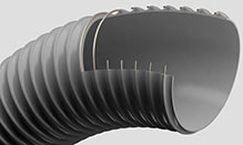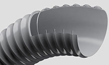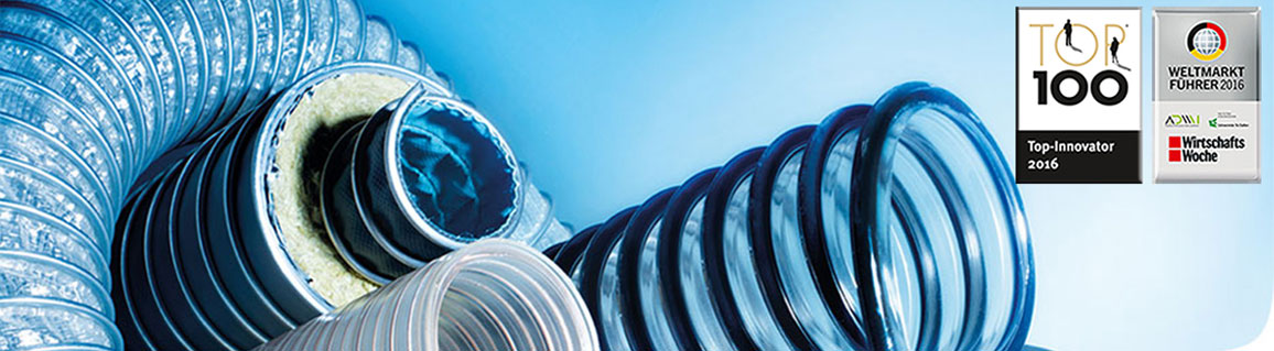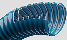 • 产品范围覆盖多种不同类型的软管,这些软管使用挤压法生产。整形过程中 弹簧钢丝嵌入剖面 无法移动或转动材料螺旋焊入重叠上,从而使软管最终成型