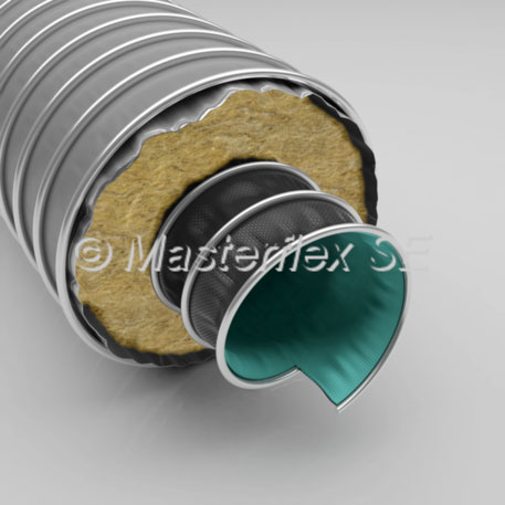• 在许多复杂生产领域中,Masterflex还专门处理高性能织物。生产过程有专利和名的Clip软管应用多种不同类型的织物织物类型特征和素养大相径庭例子包括多防化织物,如PTFE、Viton、Kapton或Hypalon另一些则包括极耐热织物类型,使高温区有可能危险应用使用的材料通过专利的Clip法在外部钢螺旋中绑定,从而产生防压软管使用这种方法,焊接、联结或缝纫都没有必要,因为夹片或clips提供足够稳定性视外部或内部负载而定,软管可多层生成,以提供更大的耐用性