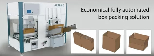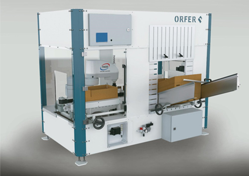 ORFER BoxCellPlus opens the cardboard, folds the flaps, fills out the cardboard boxes and seals the bottom with tape. Due to a modular structure and an adjustable control system it is easy to connect to an automated packing system. The high speed of Shibaura Machine SCARA robots has made the development of the packing cell possible.