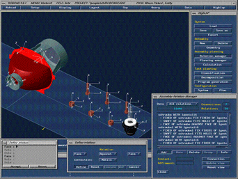 Fig. 2 describes the system, which has been developed in our institute. In the first step the assembly group is specified using symbolic spatial relations (Fig. 3). The user only has to click on the appropriate surfaces to do this. Possible contradictions and errors produced by the user can automatically be detected by the system.