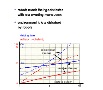 The paths generated by the statistical methods have been evaluated and compared to results obtained with a conventional planner, which minimizes the path length. Naturally, the statistically planned paths are longer as they purposely incorporate detours. In dynamic environments, however, the detours allow to significantly decrease collision probabilities and the expected driving time compared to the conventional trajectories.