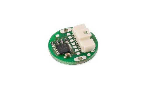 Each magnetic encoder contains an integrated circuit that senses the angular position. The IC senses the angular position of a permanent magnet placed above it. The permanent magnet is diametrically polarized and of cylindrical shape. Hall sensor technology detects the magnetic flux density distribution at the surface of the silicon. Hall sensors placed in a circular array around the center of the IC deliver a voltage representation of magnetic field distribution. The sine and cosine voltage outputs from the sensor array vary with magnet position. The sine and cosine signals are then converted to absolute angle position with a fast flash interpolator. This basic sensing technology can then be combined with further electronics to produce a wide range of output formats. Resolutions of up to 13 bit absolute (8192 counts per revolution incremental) are achieved with internal interpolation. The ability of the encoder system to operate with a gap between the magnetic actuator and the encoder chip allows its incorporation into designs that need isolation of the moving elements.