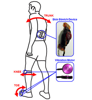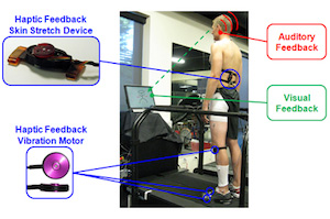 即时反馈, 通过振动和皮肤拉伸, 并用视觉和听力反馈, 帮助训练新的步行策略工作面向健康对象和骨髓炎患者,以减少联合负载并预防或治疗骨髓炎