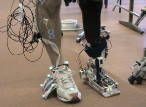 - 带经典假肢行走非常困难和耗能,就像休赫赫尔说道“像用闭合滑雪靴行走一样”。出自我们技术兼容演算器 双步机器人像双路Lucy 我们开发AMP脚被动假肢(行走技巧不提供能量),但能量存储并释放,尽量模仿正常脚踝
