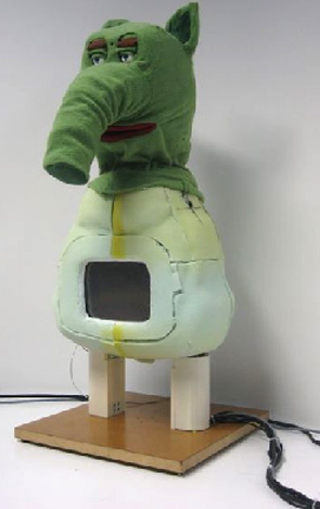 - Probo是一个智能拥抱机器人,开发成研究平台研究认知人机器人交互作用,并特别关注儿童机器人Probo设计成社会接口,提供自然交互作用,同时使用人式社会提示和通信模式机器人完全激活头20度自由,能显示面部表达式显着特征是移动后备箱和软可拥抱夹克方便用户机器人界面使运算符控制机器人