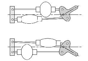 - 可见三体环绕一个旋转轴可视化概念图1左体可视为上段,右机为下段和旋转轴,穿透膝关节环转轴图3显示拉杆臂分线为小体弹簧连接上拉杆臂固定点与右体固定点对端线连接机制