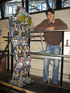 - 项目的目标是创建轻量分机,以动态稳定方式行走双片构造人文化聚焦下行段,由两条直径组成机器人重约30公斤 高150cm机器人受限只在人造平面移动, 因为它是单维联结, 由对阵充气人工骨架组成肌肉是轻量充气驱动器,低压工作,可直接并发,不设复杂适配机制演动算法中将利用这些演动器可变被动行为