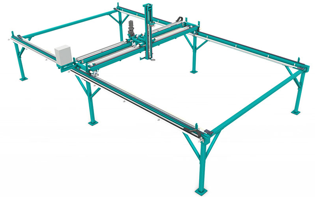 设计使用双横向线性向导x轴支持坚固钢框架,轨迹移入线性向导平滑