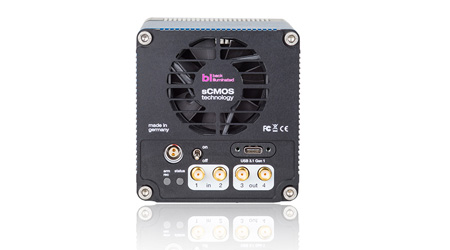 Its high-end tandem lens system equally distributes the incident light from a single optical input to the 4 individual channels - completely free of artifacts. Each channel can detect single photons with 51 ns shortest exposure time and up to 30 fps at full 2.3 MPixel resolution.
