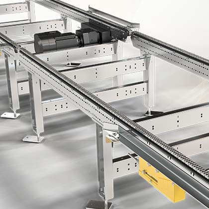 DAMBACH链传递器由自支持链条组成,固定在一个僵硬框架上串数可修改以适应程序双工链与直侧板保证谨慎运货优化支持面链由低阻滑轨支持,可逐个拉紧所有链条均通过常用驱动盘驱动完全密封安全嵌入主框架高度可调整