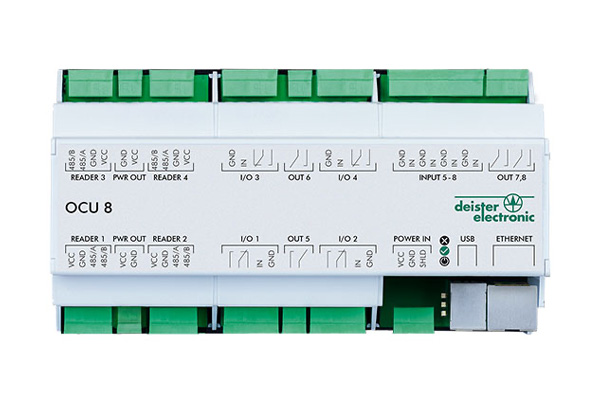 Controllers such as the OCU 8 complete the tranSpeed system. The top-hat rail compatible controller is primarily used in the area of access control and long-range identification.