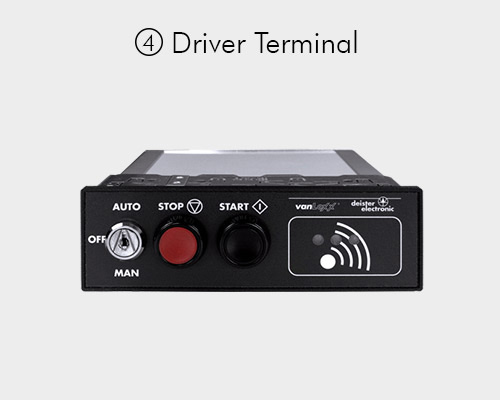 The start of the engine is also controlled by the vanLoxx system. The driver presents the same transponder to a driver terminal and, after successful identification, can start the vehicle at the push of a button.