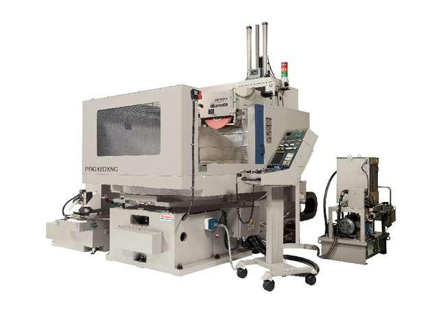 Horizontal spindle CNC rotary table grinding machine. This machine has a column moving design with air bearing rotary table for the highest precision and best surface finish quality. The table is in constant rotary motion, which adapts automatically to the changing grinding diameter.