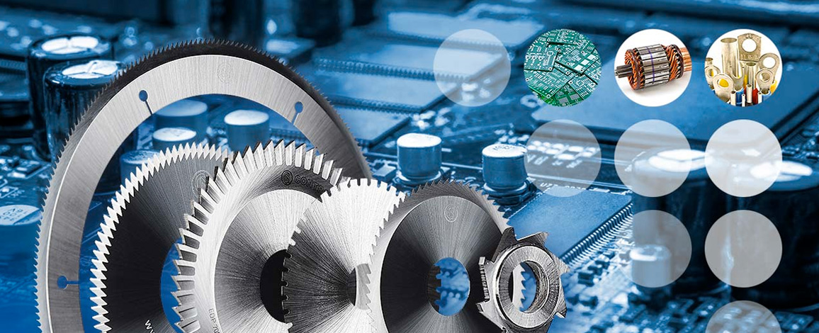 电气电子行业使用由固态碳化物或高速钢制成的单片切割工具的多重应用平衡电动机、评分或分分多氯联苯(打印电路板)或生产电接器-Controx-Neuhäuser为这些具体应用提供各种特殊解决办法