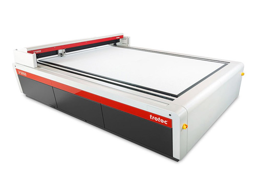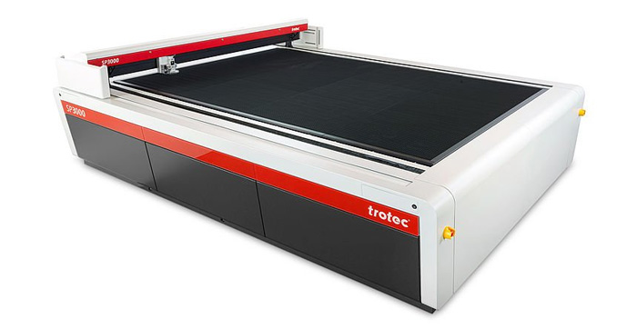 - Trotec developed an unique, multifunctional table concept for the series of SP laser cutting machines. The ideal table for every application can be selected and replaced easily and quickly. Additional functions for outstanding cutting quality include an exhaust system located directly at the work head, a sectioned exhaust system at the processing table, as well as the option of digital regulation of the compressed air.
