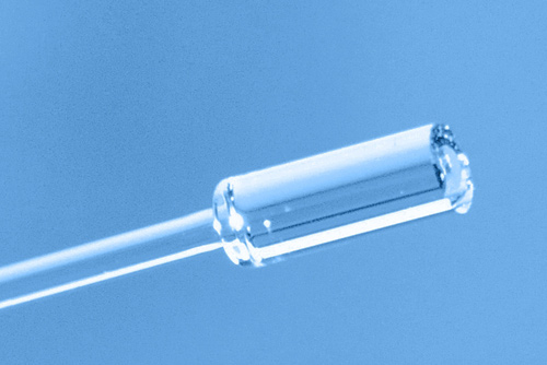 小纤维核心直径高功率密度控制纤维连接器,目前由石英玻璃制成的圆柱端帽端帽大于纤维核心并切入光纤激光束通过石英帽端面集中到纤维芯上,用同样的激光功率,电密度要低得多。举例说,将500W激光功率合二二百微米时,3毫米长石英帽改变表面能量密度乘以30允许AR涂层在千瓦范围使用方法需要强值低损复用保证端帽和纤维边界高损阈值