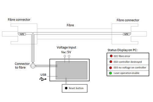 • 激光电缆高功率D80纤维破解监控用于特别关键应用中,其中纤维缺陷可能产生特别严重的后果除纤维破解外,插件温度也被检测系统发生故障时自动关闭,防止激光波束无节制泄漏可选择性,HP-SMA连接器也可以使用纤维破解监控