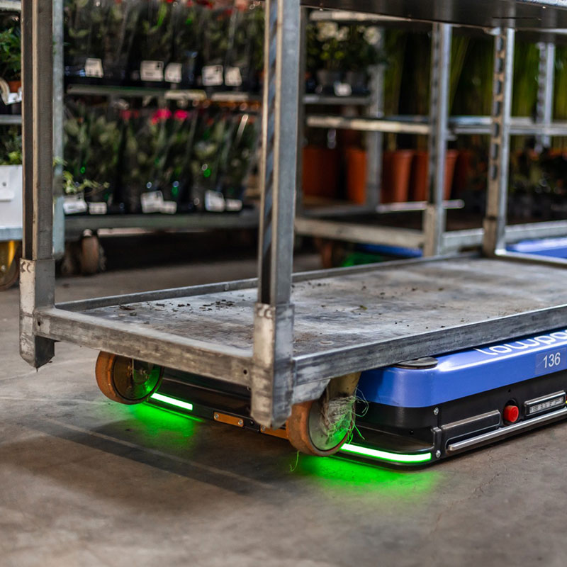 KWS选择Lowpa特别是低高度LowpadM是一个决定因素KWS玻璃厂的Lowpads接管人类以前完成的运输任务结果:容器可自动快速安全操作,玻璃屋内可用空间分配效率高得多