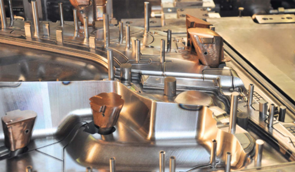 与固定机表回注入过程并发加热塑性混合结构过程有机薄片或定制长自热塑UD磁带(D-LFT)也可以加固或用回推实现功能化通过附加组合D-LFT磁带, 两种材料的优缺点都显出, 因为它们特殊流行为允许更多设计自由里布结构或加固可组成,额外功能可通过金属插入整合