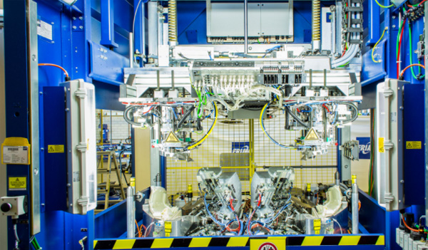 FRIMO边缘折叠系统不使用粘合器非常高效并允许短周期35秒以下空巢部分加载并整合打孔、焊接、剪片汇编或检验是可能的选项