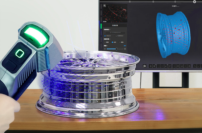 FreeScanUE像蓝激光3D扫描机继承高精度和高精度图标特征同时工序和轻量设备设计更容易持有和操作,为汽车、交通、航空航天业、模版检验、能源生成、机器制造等提供计量级高精度检验解决方案